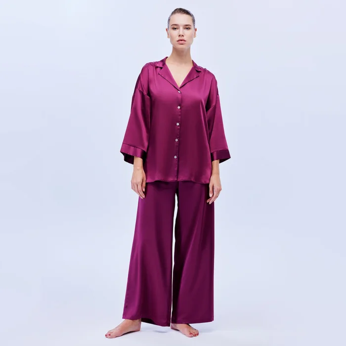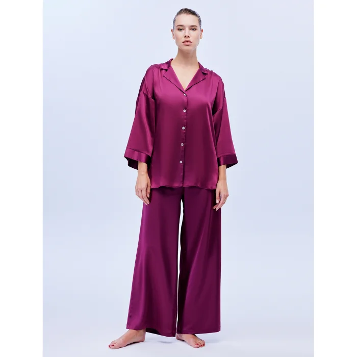Dokuma kumaş yapısı sayesinde uzun süreli kullanımlarda bile formunu koruyan ve rahat bir deneyim sunan gecelik takım; Sade ve şık tasarımıyla her yaş grubuna hitap eden düz kesim, zamansız bir tarz yaratır; Mürdüm rengiyle göz alıcı bir görünüm sağlayarak özel gecelerinizde kendinizi daha çekici hissetmenizi sağlar;