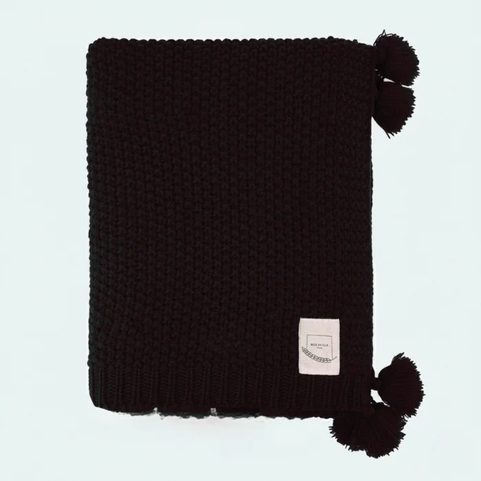 Coco Pirinç Örgü Ponponlu Triko Battaniye Koltuk Şalı